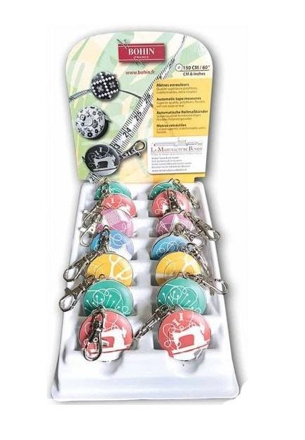 These playful tape measures from Bohin come in five different colours and sewing-inspired designs! The measuring tape is retractable and includes marking scales for centimetres and inches in easy-to-see typeface. They also include keychains, making it easy for you to take them with you wherever you go!