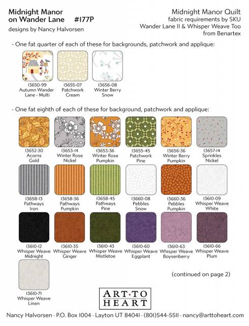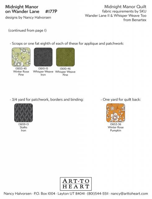 This 8-1/2" x 11" pattern offers a stand-alone block of the month quilt that measures 30" square, plus six additional projects, including an additional appliqué project, a table topper, pot holder, pillows, mini quilts and mug rug! The appliqué block for each month and one each of three pieced blocks make up the On Wander Lane quilt measuring 60" x 72". There's lots of fun happening On Wander Lane!